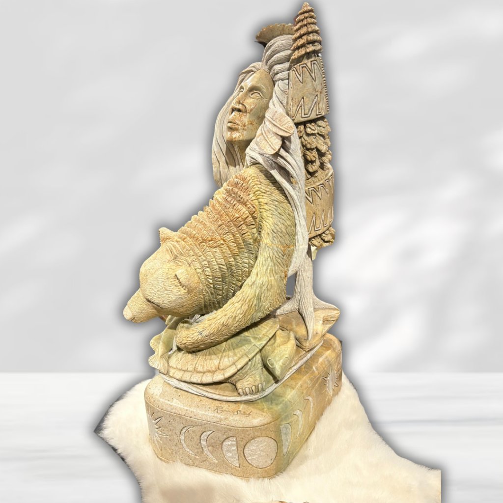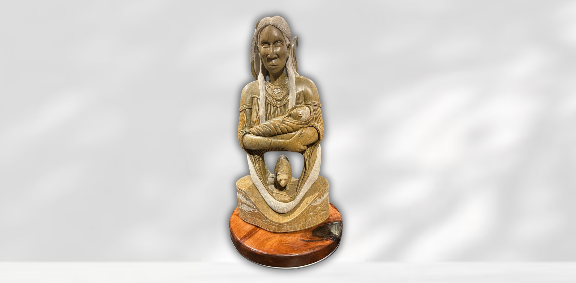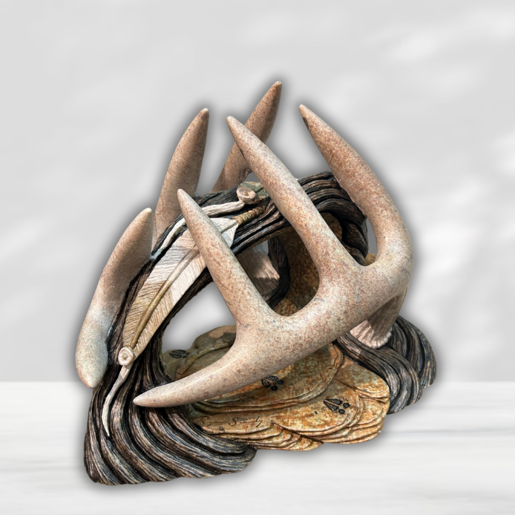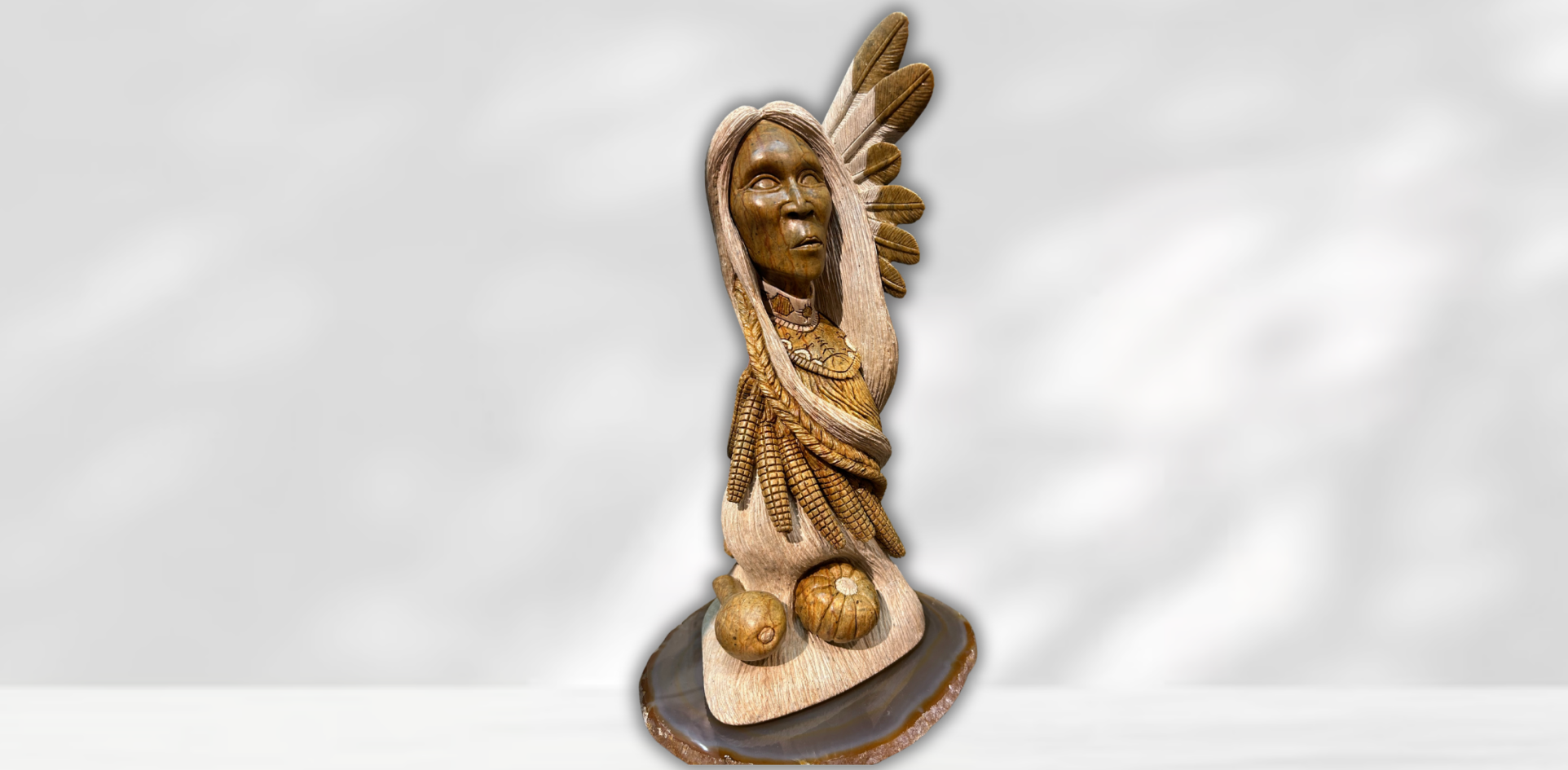 Iroquois sculpture usually reflects the mythology, culture & histories of the ‘People of the Longhouses’. Figurative works are often meant to celebrate the guardians of the harvest or what is referred to as the ‘Three Sisters’. Wildlife sculpture is often paying homage to Clan affiliations and other cultural beliefs. Noted for the superior workmanship and attention to detail, Haudenosaunee Art is highly regarded within the First Nations art world.