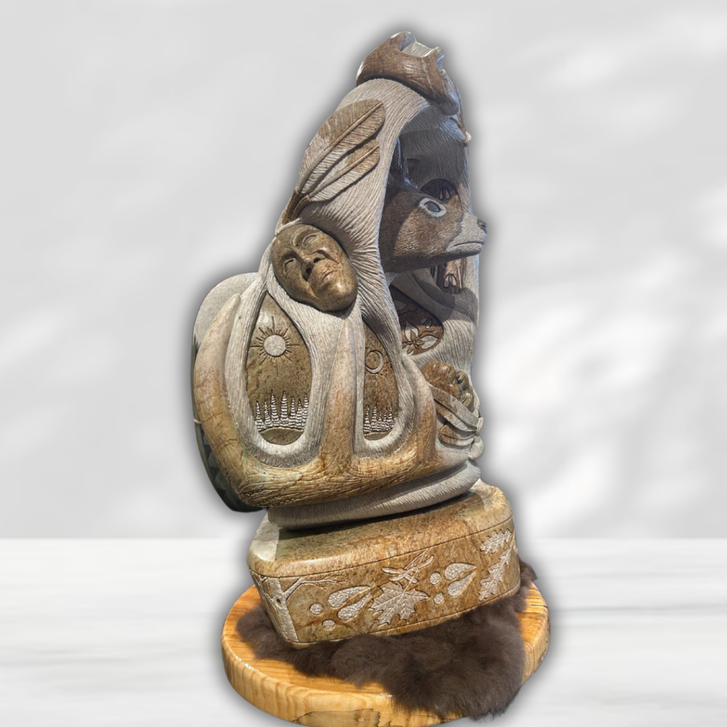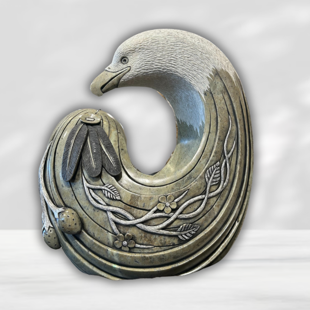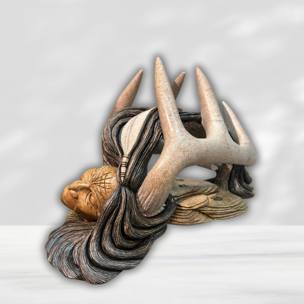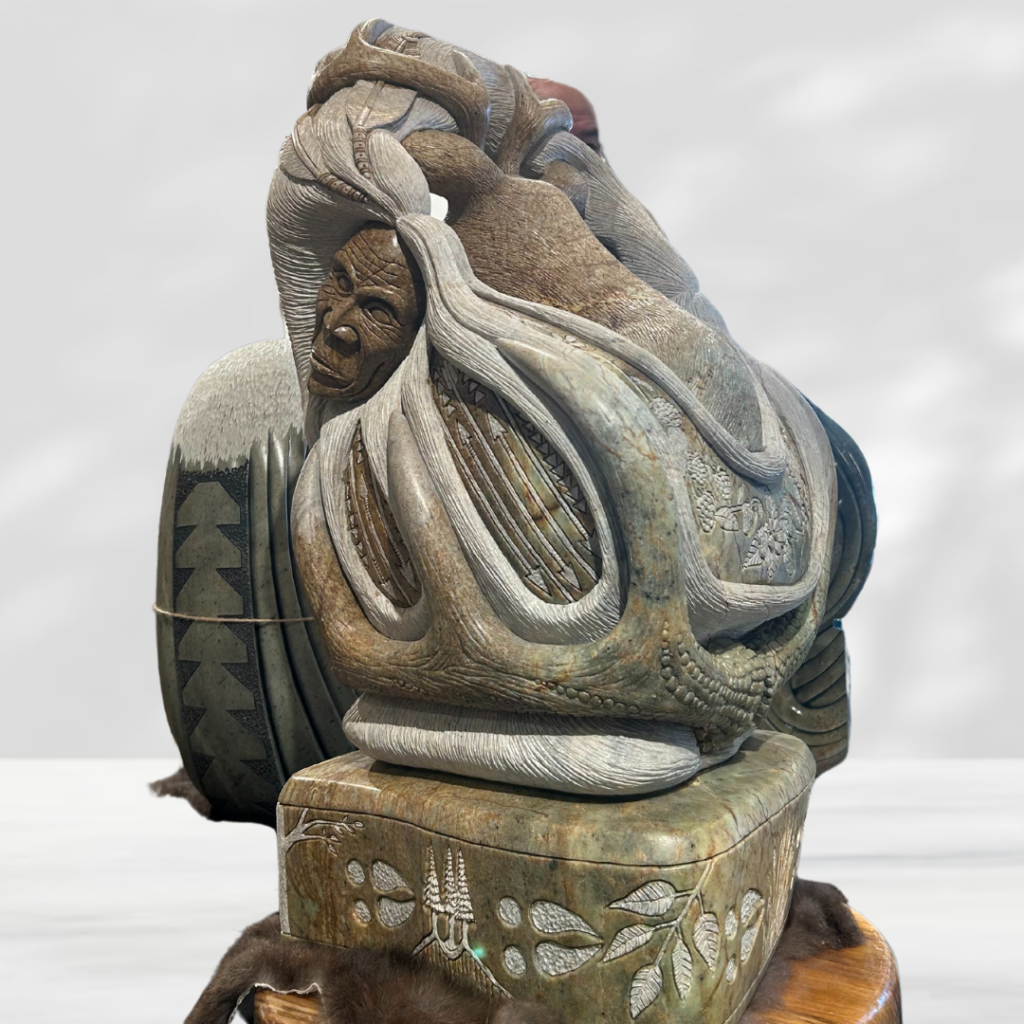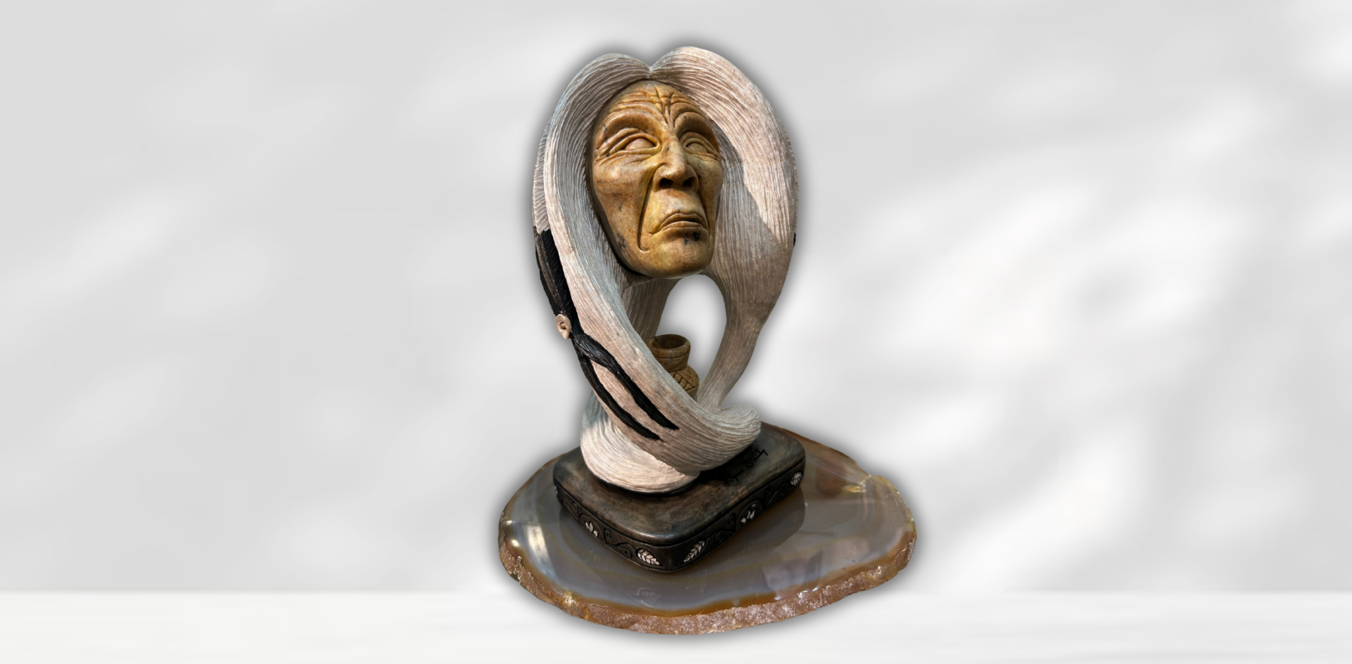 Iroquois sculpture usually reflects the mythology, culture & histories of the ‘People of the Longhouses’. Figurative works are often meant to celebrate the guardians of the harvest or what is referred to as the ‘Three Sisters’. Wildlife sculpture is often paying homage to Clan affiliations and other cultural beliefs. Noted for the superior workmanship and attention to detail, Haudenosaunee Art is highly regarded within the First Nations art world.
