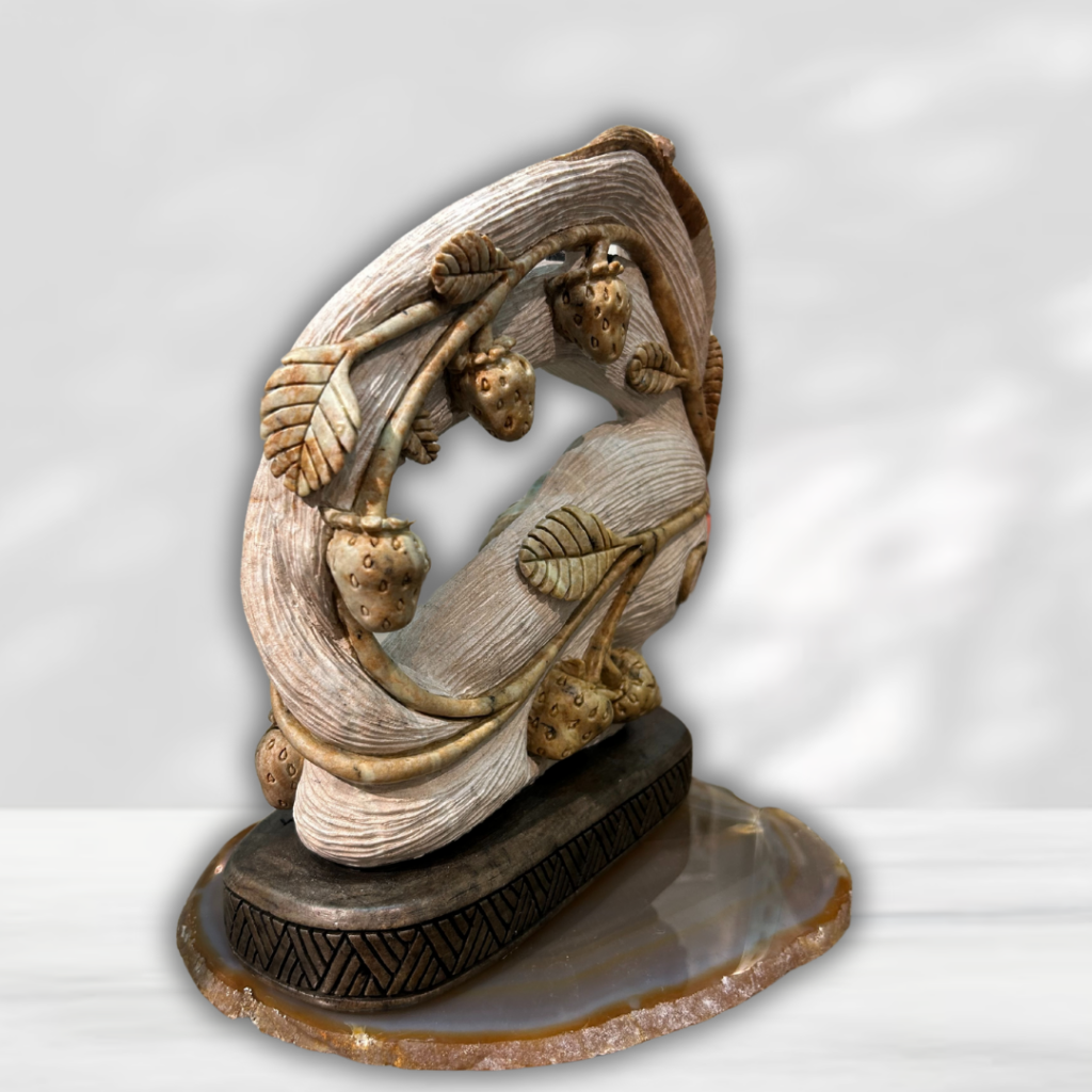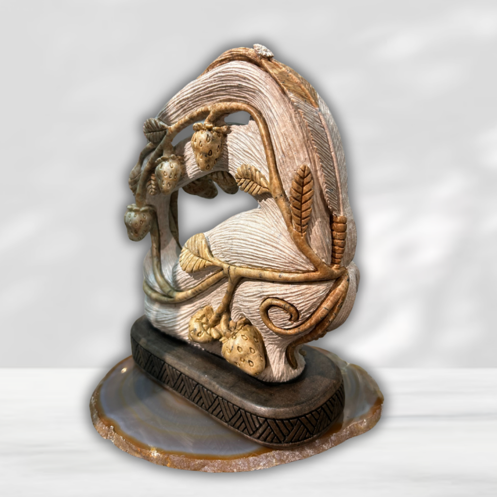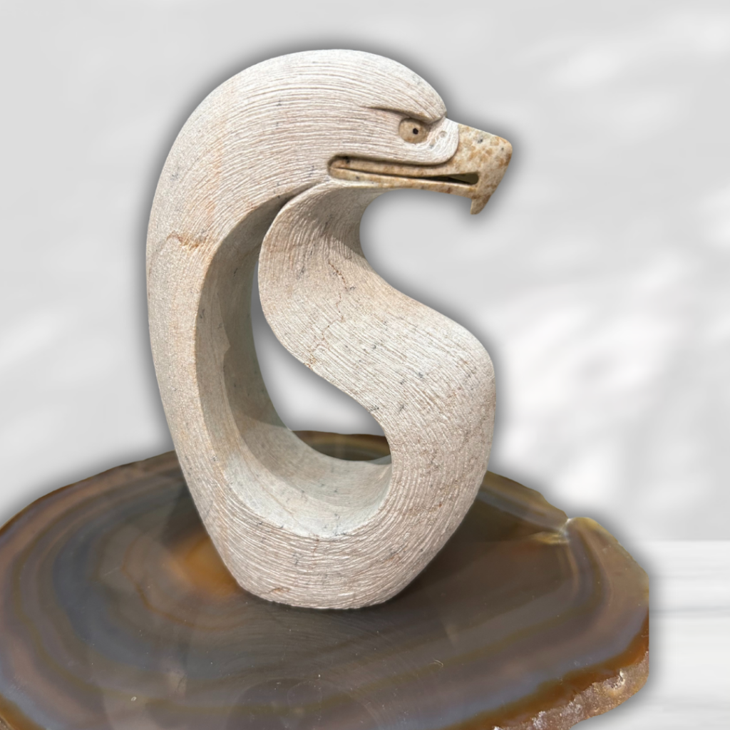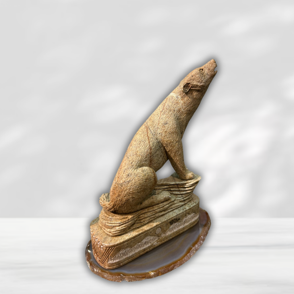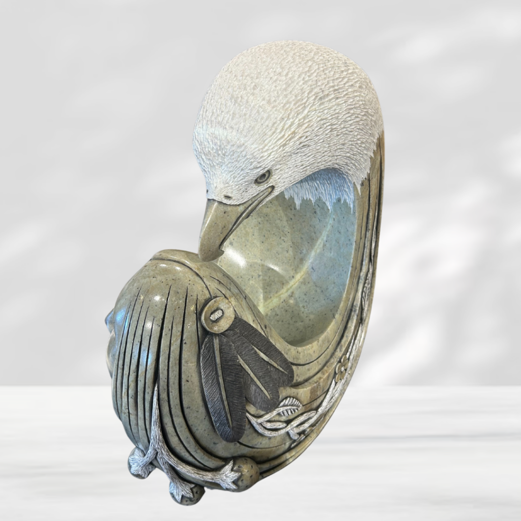Iroquois sculpture usually reflects the mythology, culture & histories of the ‘People of the Longhouses’. Figurative works are often meant to celebrate the guardians of the harvest or what is referred to as the ‘Three Sisters’. Wildlife sculpture is often paying homage to Clan affiliations and other cultural beliefs. Noted for the superior workmanship and attention to detail, Haudenosaunee Art is highly regarded within the First Nations art world.