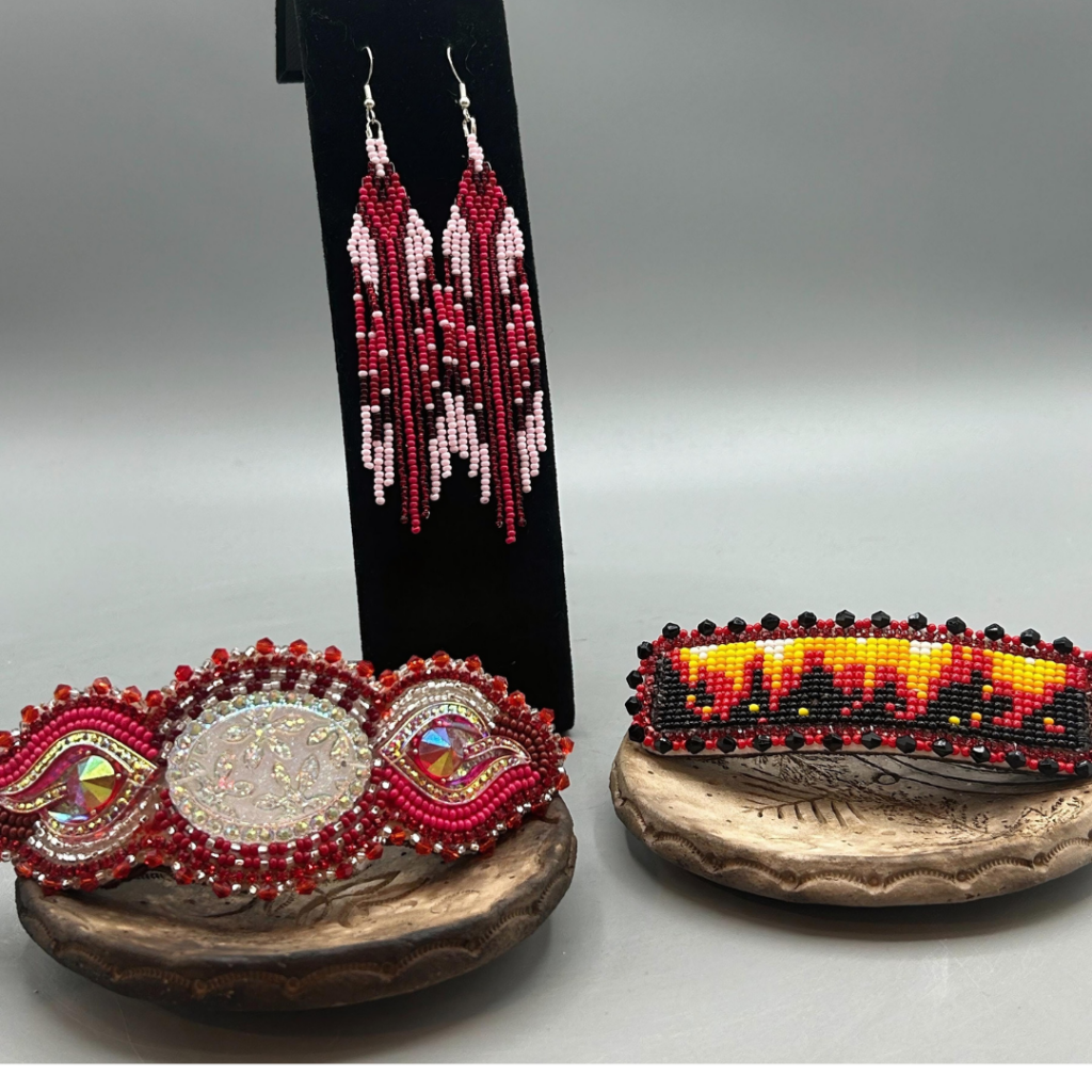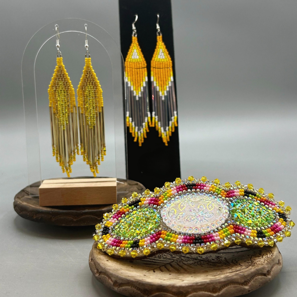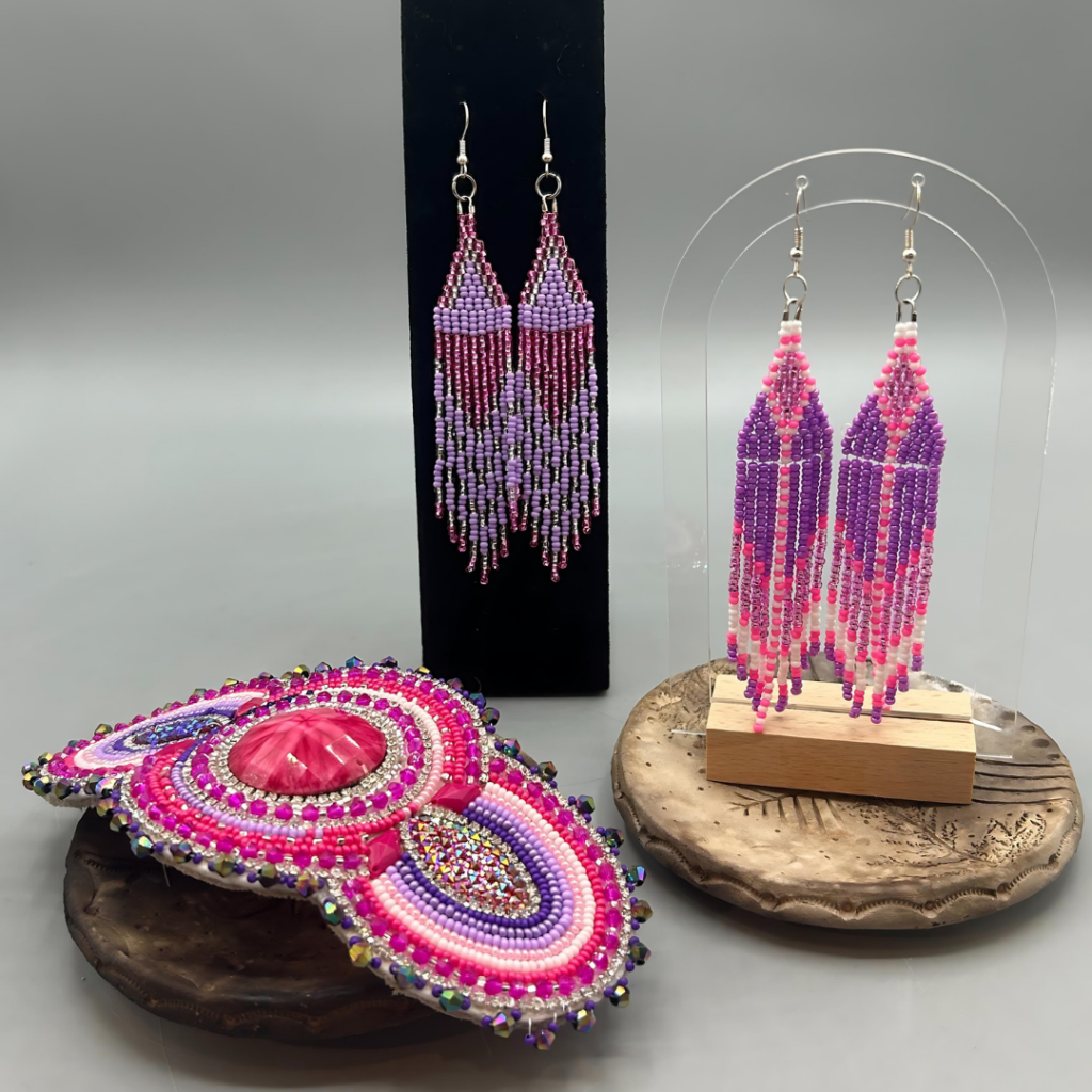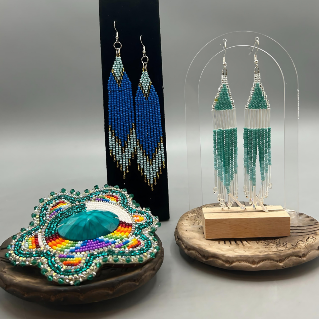 Handcrafted beaded jewelry by the talented Cree artist Ivona Lagimodiere.